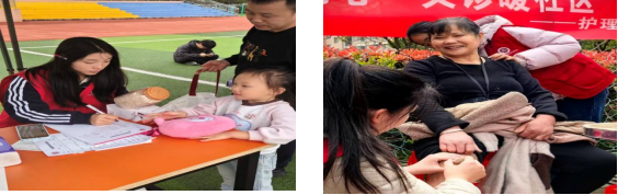 微光成炬,温暖同行。在社区服务板块,我院志愿者走进金沙湾社区以及银湖公园社区,开展健康义诊活动,将健康服务送到更多居民身边。同学们结合所学专业知识,为居民提供血压测量、艾灸体验等服务,耐心倾听、细致操作,用实际行动诠释了医学生的责任与温度。活动现场井然有序,居民们纷纷为志愿者们的专业与热情点赞。一位接受义诊的老人感慨道:“这些孩子不仅技术好,还特别有耐心,让我们在家门口就能享受到贴心的健康服务。”